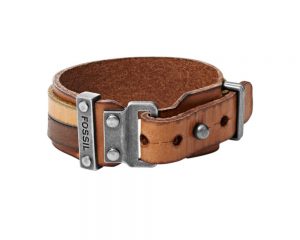 • Мъжка гривна Fossil JA5925716 с плътен дизайн, сливащ два нюанса на тъмно със светло кафяво. Това го прави различен модел и разбира се високо предпочитан. Освен това е съчетан с удобна каишка и лого на марката от неръждаема стомана. Каишката е от естествена кожа.