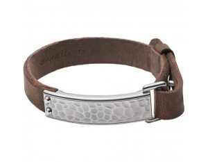 • Мъжка гривна Fossil JF02070040 отново със стилен и ежедневен дизайн! Различното тук е по-дългата плочка от неръждаема стомана, която е с леко грапава повърхност. Кожата на гривната е цвят дървесно кафяв от естествена и удобна кожа. Всички наши модели могат да се регулират според формата на ръката.